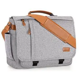 ESTARER Messenger Bag 17-17.3 Inch, Men's Computer Bag Water-resistant Canvas, Laptop Shoulder Bag for Travel Work College, Light Grey