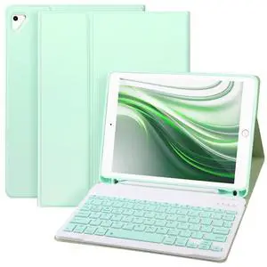 APHBZGE for iPad 6/5th Generation Case with Keyboard 2018/2017,Detachable Bluetooth Keyboard case for iPad Air 2/1,iPad Keyboard Case 9.7 inch with Pencil Holder,Square Keycaps,Green