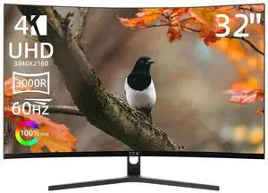 ZZA 32 Inch 4K UHD 60Hz Curved Monitor (3000R Curvature, VA Panel, 99% sRGB,AMD FreeSync,) Computer Monitors with HDMI/DP Ports,VESA Mountable, for Home Office and Entertainment
