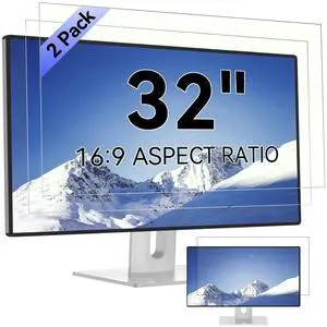 [2-Pack] 32 Inch Computer Blue Light Blocking Screen Protector for 16:9 Widescreen Monitor, Anti Glare Anti-UV Eye Protection Desktop PC LED Monitor Filter, Removable Anti-Scratch Screen Film 32in