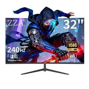 ZZA 32" Curved Gaming Monitor, FHD 1920x1080, VA, 1ms 240Hz, FreeSync Premium, DP 1.4/ HDMI 2.0, VESA Compatible, Tilt Adjustable