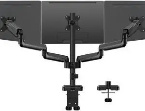 MOUNTUP Triple Monitor Mount for 17-32 inch Screens, Full Motion Triple Monitor Stand, Gas Spring 3 Arm Desk Mount Holds 4.4-19.8 lbs Each, Clamp & Grommet Mounting, Black