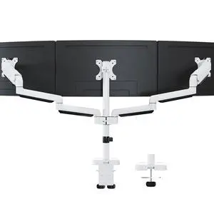 MOUNTUP Triple Monitor Mount for 17-32 inch Screens, Full Motion Triple Monitor Stand, Gas Spring 3 Arm Desk Mount Holds 4.4-19.8 lbs Each, Clamp & Grommet Mounting, White