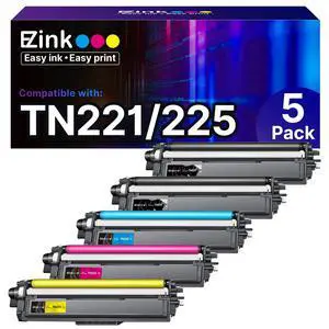 E-Z Ink Compatible TN221 TN225 Toner Cartridge Replacement for Brother TN-221 TN-225 to Use with MFC-9130CW HL-3170CDW MFC-9340CDW HL-3140CW MFC-9330CDW (2 Black 1 Cyan 1 Magenta 1 Yellow, 5 Pack)