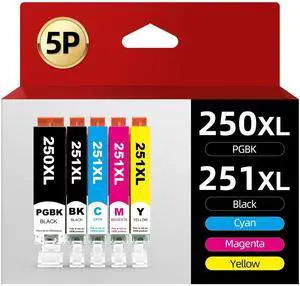 Skydo PGI-250XL CLI-251XL Ink Cartridge Compatible for Canon PGI-250XL PGI 250 XL CLI-251XL CLI 251 XL to PIXMA MX922 MX920 IX6820 MG7520 MG7100 MG5522 MG6320 MG6620 IP7220 IP8720 (5 Pack)