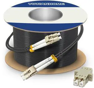 YUTIANHOME 200m (656ft) LC to LC Duplex OM3 Outdoor Armored Fiber Optic Patch Cable, 10Gb, 50/125um Multimode Optical Fiber Cable, Low Friction LSZH Black
