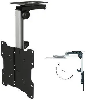 InstallerParts Folding TV Ceiling Mount - for 17 to 37 inch Flat Screen Display and Monitor of up to 44 Pounds, Adjustable Flip Down and Swivel Angle, VESA 75x75 mm to 200x200 mm, Black TV Mount