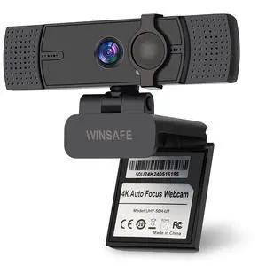 WINSAFE 4K Webcam for PC, UHD Video Calling, PDAF AutoFocus, Dual Noise-Canceling Microphones, 70 FOV, 1080P@60FPS, Privacy Cover, USB Plug&Play, Works with Teams, Zoom, OBS, Skype