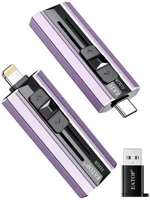 EATOP 512GB Flash Drive Intended for iPhone iPad, Memory Stick Storage for Photos and Videos Backup, Compatible with iPhone iPad Android PC, Plug and Play, No Application Required (Light Purple)