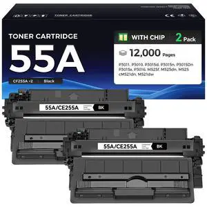 55A Toner Cartridge Black 2-Pack with Chip High Yield Replacement for HP 55A CE255A Compatible with LaserJet Enterprise 500 MFP M525dn M525f Flow M525c P3015d P3015dn P3015n P3015x Pro M521dn Printer