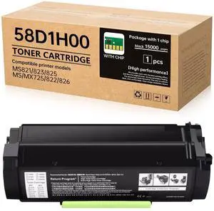 58D1H00 58D1H0E Black Toner Cartridge(15,000 Pages) Compatible with Lexmark 58D1H00 58D1000 58D1U00 Work for MS823 MS725 MS821 MS822 MS824 MS826 MX721 MX722 MX725 MX824 Printer(with Chip)