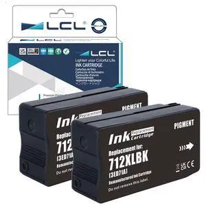 LCL 712XL Black 80ML High Yield Ink Cartridge Replacement for HP 712 712XL 3ED70A 3ED71A for HP DesignJet T650 T630 T250 T230 T210 Printer (2-Pack)