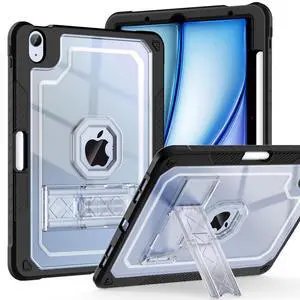 ZoneFoker for iPad Air M3 11 Inch 7th Case 2025, for iPad Air M2 6th/5th/4th 11-inch Case 2024/2022/2020, Clear Slim Heavy Duty Shockproof Cover with Pencil Holder Kickstand, Black