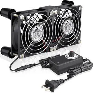 GDSTIME Dual 80mm x 25mm Computer Fan with AC Plug, 110V 120V 240V Variable Speed Controller for Modem Router Receiver DVR PlayStation Xbox Mini PC Case AV Cabinet Cooling