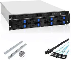 RackChoice 2U Server case 6Gbps hot swap 8 x3.5 Bays M-ATX/Mini-ITX Depth 21.5" Support ATX PSU, Include Sliding Rail and Minisas to SATA Cables