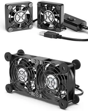 Xiaoqijia Dual 80mm Cooling Fan - 10-Speed USB 5V/DC 12V Power, IPX5 Waterproof for Tablet, TV, Router, Xbox, DVR, Computer Cabinet, Greenhouse & Kennel Component Cooling