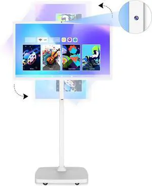AISHICHEN 27 Inch Portable Touchscreen Monitor ^^ Rolling Monitor on Wheels ^^ 1080p Smart Screen ^^ 8g+128g ^^ Android OS 13 ^^ 4K Webcam & 133wh Battery(Up to 8H) (1080P)