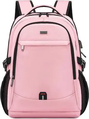 DUSLANG 17 Inch Laptop Backpack for Travel Water Resistant College Backpack for Men/Women Laptop Bag with USB Charging Port, Pink