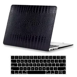 KEROM Compatible with Crocodile MacBook Pro 15 inch Case 2019 2018 2017 2016 Release A1990 A1707 with Touch Bar, Crocodile Skin Alligator Skin PU Leather Hard Shell Case & Keyboard Cover, Black