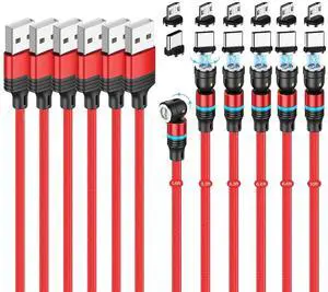 Losuesme Magnetic Charging Cable (6-Pack,1.6+3.3+3.3+6.6+6.6+10ft) 540 Rotation Magnet Phone Charger USB C Cable 3A Fast Charging Magnetic Charger Cable with LED Light for Micro USB Type C Device