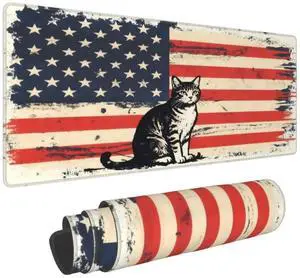 CANFLASHION American Flag Mouse Pad,Office Desk Mat 31.5"11.8",Large Gaming Mouse Pad with Cat Design, XL Extended Waterproof Desk Pad for Computer with Non-Slip Rubber Base300 * 800 * 3mm
