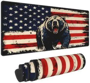 CANFLASHION American Flag Mouse Pad,Office Desk Mat 31.5"11.8",Large Gaming Mouse Pad with High-tech Bear Design, XL Extended Waterproof Desk Pad for Computer With Non-Slip Rubber Base300*800*3mm