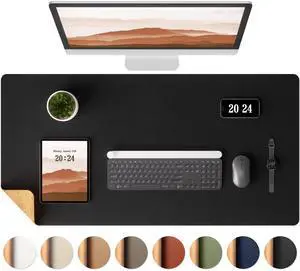 Aothia Dual-Sided Desk Pad - 37.8x17 inches Leather Desk Mat, Natural Cork Desk Pad Protector, Large Mouse Pad for Desk, Waterproof Desk Blotter Pad, Desk Writing Pad for Office Work/Home, Black