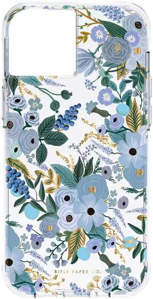 Rifle Paper Co. iPhone 13 Case for Women [10ft Drop Protection] [Wireless Charging] Floral Print Phone Case for iPhone 13, Slim iPhone Case, Anti Scratch, Shock Absorbing Materials - Garden Party Blue
