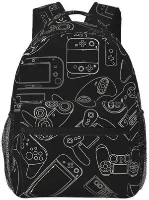Fiokroo Video Game Controller Black Background Backpack School Bag For Students Teens Men Women Gaming Gadgets Laptop Backpacks Travel Daypack Bag With Multiple Pockets
