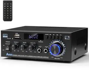 Stereo Audio Amplifier 2025 Upgraded AK45 Bluetooth Receiver for Home Stereo, 400W 2 Channel Wireless Bluetooth 5.0 Power Amplifier System with FM Radio, USB, SD Card, and Remote Control