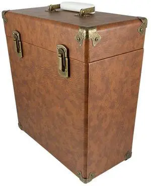 GPO Portable Retro Style Carry Case for LPs, Albums and 12Inch Vinyl Records (Holds 30 Albums) (Brown)