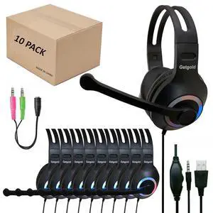 Getgold Wired Headphones with Microphone, 10-Pack, On-Ear, 3.5mm Wired 5FT Cord, Bulk Headphones for School, Classroom, Primary to University, Fit All Head Sizes (Glow 7 Colored Lights)