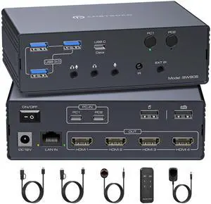 ATLAHET Thunderbolt KVM Switch Docking Station 4 Monitors 2 Computers HDMI 4K60Hz Displaylink USB C Dock for Laptops&Desktop Share 4xHDMI USBA/C 1000Mbps Ethernet Audio Support Extended/Copy Mode