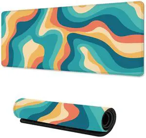 TUBAMQ Mouse Pad Large,Colorful Groovy Swirl Wave Desk Pad with Stitched Edges for Home Office Work Non-Slip Rubber Base Gaming Mouse Pad, Desk Mat, 31.5 x 15.7 in