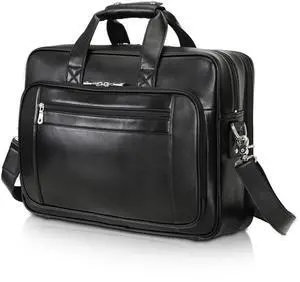 Polare Napa Leather Laptop Briefcase - Business Travel Shoulder Bag for Men - Fits 17.3" Laptop (Black)