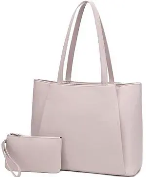 CYHTWSDJ Laptop Tote Bag for Women 15.6 Inch Work Bag Waterproof Leather Laptop Bag with Clutch, Large Capacity Office Purse Computer Briefcase Durable Shoulder Bag for Casual Business Travel (Nude)