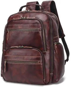 Vintage Full Grain Leather Backpack For Men, 17.3'' Laptop Bag Causal Rucksack Shoulder Bag Overnight For Business/Hiking/Travel