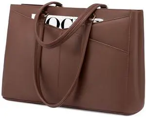 LOVEVOOK Laptop Bag for Women 15.6 Inch Tote Bags Waterproof Leather Briefcase Computer Women Business Office Work Bag,Dark Brown