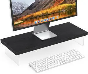 SSWOOD Monitor Stand Riser, Wood & Acrylic Computer Monitor Stand Desk Desktop Organizer Table for Home, Office Workspace, Laptop Riser, Printer, PC & TV Screen Riser