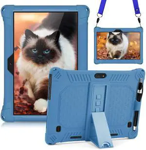 DETUOSI Case for YELLYOUTH 10.1 Tablet, Soft Silicone Lightweight Case Compatible with Dragon Touch Notepad K10, ZONKO 10.1, Beyond Tab 10.1, with Stylus Pen and Shoulder Strap, Dark Blue