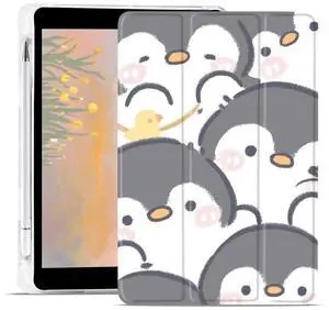 JOYLAND Cute Penguin Case for iPad Air 11 Inch M3 2025/M2 2024 with Pencil Holder, Clear TPU Foldable Smart Stand Back Cover, Auto Wake/Sleep Full Body Protection Shockproof Case