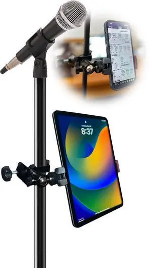 Journey Instruments MDC01 Tablet & Phone Holder for Mic Stand Universal Mount for iPad, iPad Mini, iPad Air, iPhone, Smartphones Adjustable Mic Stand Tablet Holder for Karaoke, Recording