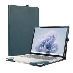 Surface Laptop Studio 2 (2023) / Studio (2022) Case - All-Inclusive Anti-Fall Protective Shell, 14.4 Inch PU Leather Inner Bag Cover (Plain Dark Green)