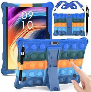 DETUOSI Silicone Case Compatible with Dragon Touch Notepad K10, 10 inch Tablet Case, Multi-Angle Protective Cover for ZONKO K105 10 inch, Winsing 10 with Strap & Stylus Pen, Dazzling Dark Blue