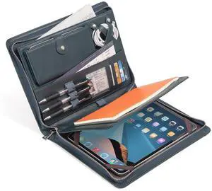 Augus Genuine Leather Portfolio with Zipper for Men/Women, Padfolio Business Resume A4/Pad, Folder Organizer, with Document Pocket, ID Window, Card Slots, Pen Holders (Royal Blue)