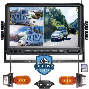 Wireless 10-Inch 3 Split 128GB Large Audio Screen 1080P Backup Camera Monitor & Built-in DVR Video Recorder Compatible with Pre-Wired RV Truck Trailer Class A B C Motorhome Camper System