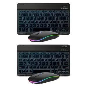 2 Pack Ultra-Slim Bluetooth Keyboard and Mouse Portable Mini Wireless Keyboard Rechargeable 7-Color Backlit for Apple iPad iPhone Samsung Tablet iPhone Smartphone iOS Android Windows,Black