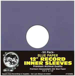 (50) Blue Paper Super Heavyweight 12" Record Inner Sleeves with Center Hole - 12IWBL
