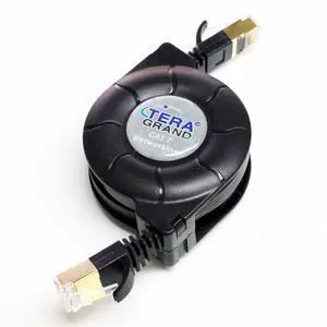 Tera Grand - Premium Cat-7 10 Gigabit Ethernet Retractable Cable for Modem Router LAN Network PlayStation Xbox, 1.5Meter (4.9 Ft.) in Retail Package