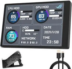 WOWNOVA English Version Computer Temp Monitor, ARGB PC Case Display, IPS USB Mini Screen, CPU RAM HDD Data Monitor